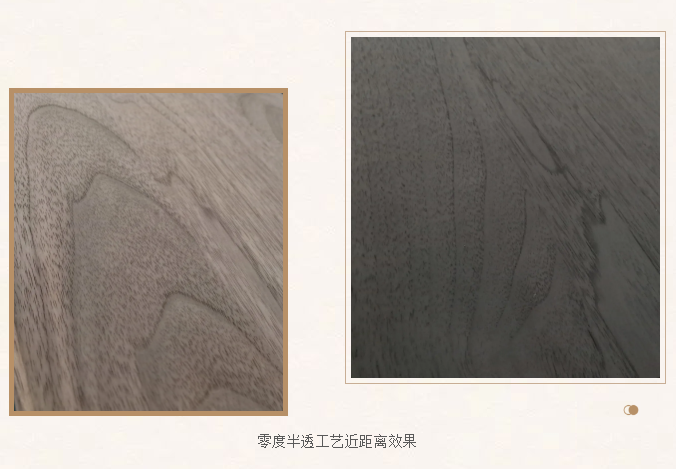 零度半透工藝效果,完美保留了木紋層次感和木紋自然感的凸顯,同時利用“特殊著色手法”對家具面做出若隱若現(xiàn)“猶抱琵琶半遮面”的視覺效果。