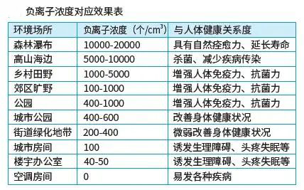 在自然界中當負氧離子數(shù)在10000個/cm3以上時,人會感到神清氣爽、舒適愜意。所以負氧離子也被稱為“空氣維生素”,甚至有人稱它為“長壽素”。