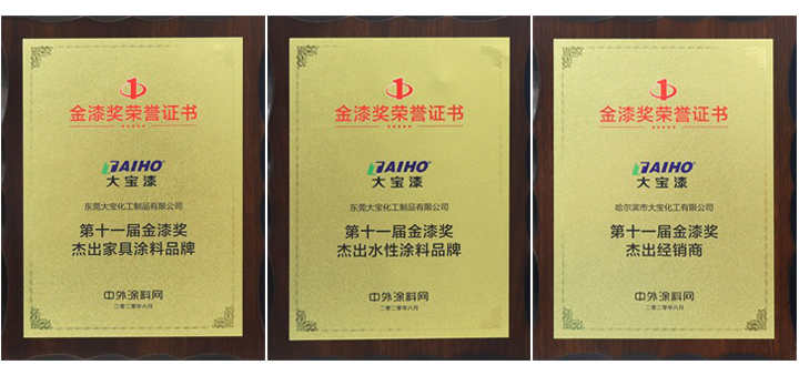 “金漆獎”是中國涂料行業極具影響力和公信力的年度品牌活動,被譽為“涂料行業奧斯卡”。作為涂料行業一年一度的高咖位盛會,第十一屆金漆獎受到了眾多涂料企業的廣泛關注。經過三個月的網絡和紙質投票、專家評審等環節,最終誕生出極具年度價值和標桿性的第十一屆金漆獎榜單。在眾多涂料品牌激烈競爭中,大寶漆能夠一舉摘得三項大獎,既離不開優異的品牌表現和專業的服務,也離不開行業與消費者對大寶漆的肯定和支持。
