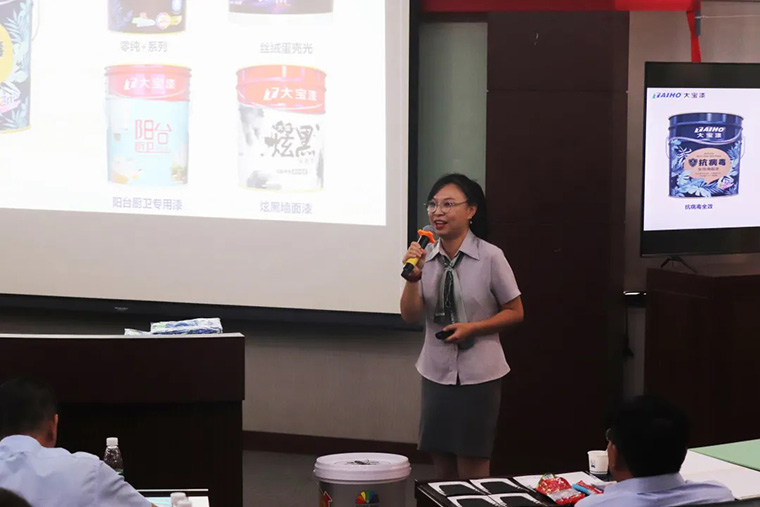 葉副總表示,此次推廣會議,旨在向大家宣導大寶近期在產品和服務方面所做的努力,希望這次新產品的推廣,能夠賦能經銷商應對裝修漆市場面臨的新挑戰,促使大寶品牌不斷創新、不斷精進,引導裝修漆市場新趨勢、心服務。