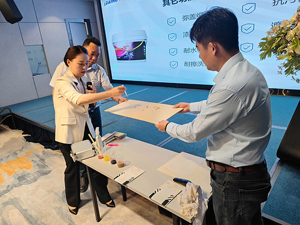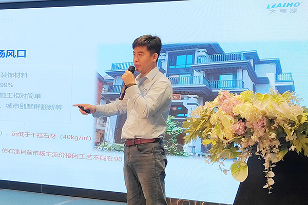 中南區(qū)業(yè)務(wù)主管卓杰分享2024 大寶仿石漆盈利模式和市場(chǎng)前景,詳細(xì)解讀大寶仿石漆特點(diǎn)和優(yōu)勢(shì),引起與會(huì)者對(duì)于產(chǎn)品的興趣和關(guān)注,為產(chǎn)品的推廣打下了良好的基礎(chǔ)。