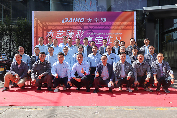 11月5日,大寶漆順德·龍江全新高定涂裝工藝展廳盛大啟幕。活動(dòng)以“木藝臻彩 高定非凡”為主題,大寶化工直銷(xiāo)事業(yè)部總經(jīng)理張正賢、業(yè)務(wù)一部副總經(jīng)理周志鴻、業(yè)務(wù)一部營(yíng)銷(xiāo)總監(jiān)葉小兵以及順德辦全體業(yè)務(wù)與工程服務(wù)人員等,共同見(jiàn)證了這一服務(wù)升級(jí)的新里程碑。