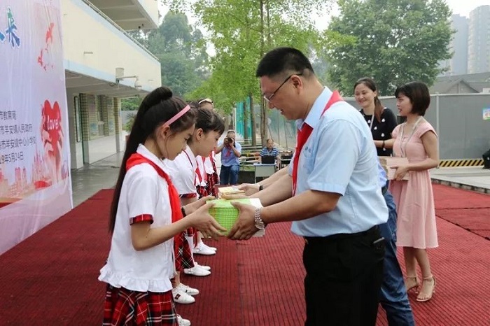 活動中,成都大寶化工、中建一局為羊安小學捐贈課外書籍、體育用品和公益教育基金。成都大寶化工業務總監鄭開國、中建一局集團第一建筑公司項目經理仇宏海表示,關心和支持教育事業是企業義不容辭、責無旁貸的責任,希望每個孩子都能夠在更加舒適的環境中快樂學習、健康成長。并鼓勵羊安小學的孩子們,用心學習科學文化知識,努力成為國之棟梁。
