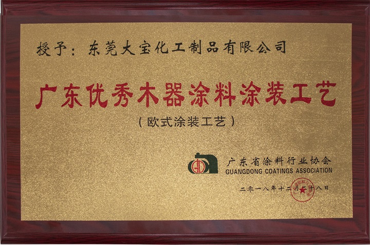 在2018廣東環(huán)保涂裝發(fā)展大會(huì)上,舉行了廣東省涂料行業(yè)協(xié)會(huì)“涂裝分會(huì)”成立儀式、2018廣東優(yōu)秀涂料涂裝項(xiàng)目表彰活動(dòng)。憑借在綠色涂裝領(lǐng)域的優(yōu)勢(shì)和良好口碑,大寶漆被授予廣東省涂料行業(yè)協(xié)會(huì)涂裝分會(huì)“副理事長單位”。 在大會(huì)頒獎(jiǎng)環(huán)節(jié),大寶漆歐式涂裝工藝還獲得“廣東省優(yōu)秀木器涂料涂裝工藝”榮譽(yù)。