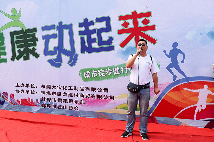 開幕式上,蚌埠慢跑俱樂部楊會長致開幕詞,他強調(diào)徒步和慢跑對于現(xiàn)代人們健康的重要性。大寶漆華東二區(qū)業(yè)務(wù)總監(jiān)謝重亮向參加徒步的健將們介紹了戶外運動要注意的事項。接著,蚌埠巨龍建材張俊良總經(jīng)理發(fā)言。他表示,大寶漆作為綠色環(huán)保涂料的制造商和涂裝解決方案的供應(yīng)商,長期以來,秉持“堅持品質(zhì),永續(xù)環(huán)保”的理念,為廣大消費者提供綠色環(huán)保的涂料產(chǎn)品。此次大寶漆舉行蚌埠徒步健身活動,是希望為蚌埠市民帶來積極健康的生活方式,引導(dǎo)更多人參與運動,提高身體素質(zhì),與大家攜手共創(chuàng)健康的生活方式,共建綠色家園!最后他宣布2018年蚌埠大寶漆健康徒步行活動正式開始。