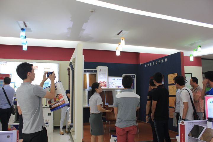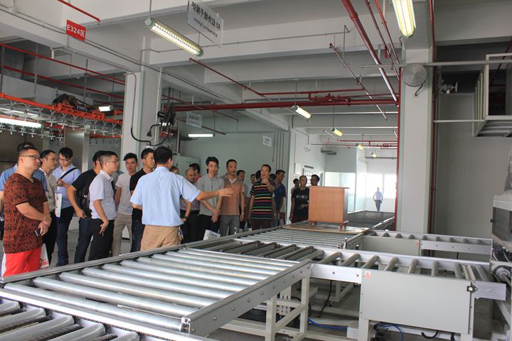 在大寶化工工作人員的陪同下,青家協(xié)一行先后參觀了中央實驗室、4C元素店、智能涂裝測試線、色板中心、后花園和安管中心。在色板中心參觀時,家具企業(yè)家們紛紛慨嘆大寶漆精湛的施工工藝和優(yōu)越的品質(zhì),表示對大寶漆早有耳聞,今日一見,更是加強了與大寶漆合作的意念。