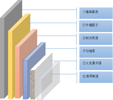 真石漆是以高品質(zhì)純丙烯酸合成乳液為主要粘結(jié)劑, 以天然彩砂為骨料及選用各種優(yōu)質(zhì)助劑配制而成,具有耐水性、耐堿性好,粘接強(qiáng)度高,涂層堅(jiān)硬,耐候性?xún)?yōu)等特性。晶瑩剔透的漆面突出強(qiáng)烈的藝術(shù)效果 ,是一種高級(jí)、自然、莊重、樸實(shí)具有天然風(fēng)格的豪華型裝飾涂料。