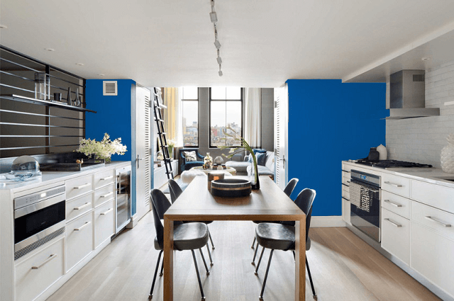 運用琥珀藍(lán)與珊瑚橘對比色碰撞出沖擊力的色彩力量,一般的居宅大多會以低彩度的色調(diào)創(chuàng)造出寧靜感,而橘色的存在則可以反轉(zhuǎn)這樣的調(diào)性,創(chuàng)造視覺亮點。
